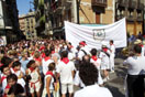 At 23:00 every night they have fireworks in the park we were sleeping in. After the fireworks cleared we found a nice place and settled down to rest up for the running in the morning. After a while other GTL students happened upon our campsite and they joined the group. We woke up at 5:00 to prepare the 8:00 running. We packed up our stuff and checked everything we owned. (You don't want a backpack on while you are running for your life.) Headed down to the beginning of the course. When we got in the course it was already packed. Tons and tons of people were waiting to run with the bulls. I bought a newspaper to roll up and distract the bull with if it got to close. We walked further down the half-mile course so that we didn't have to run the entire way during the 2 minute run. I can't run a 4-minute mile! As it got closer to 8:00 everyone was getting ready. Everyone was stretching out and preparing for the run of their lives.