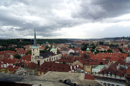 - A view of Prague from a clock tower.